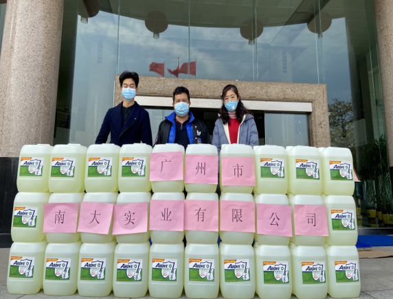 南大集團向番禺區(qū)、鎮(zhèn)政府捐贈消毒水支援疫情防控