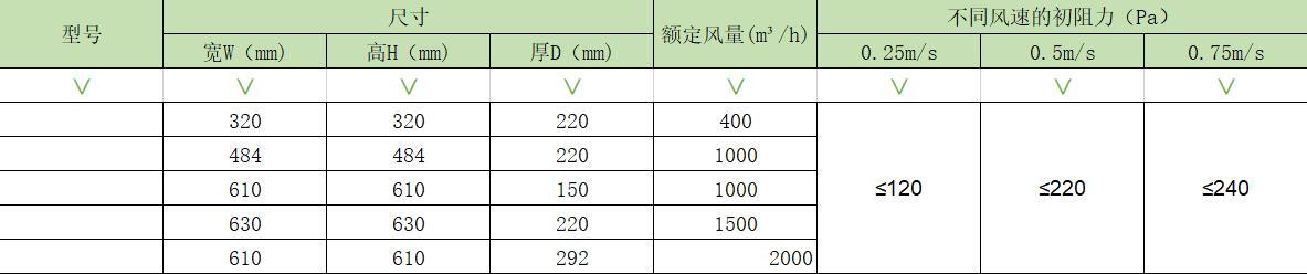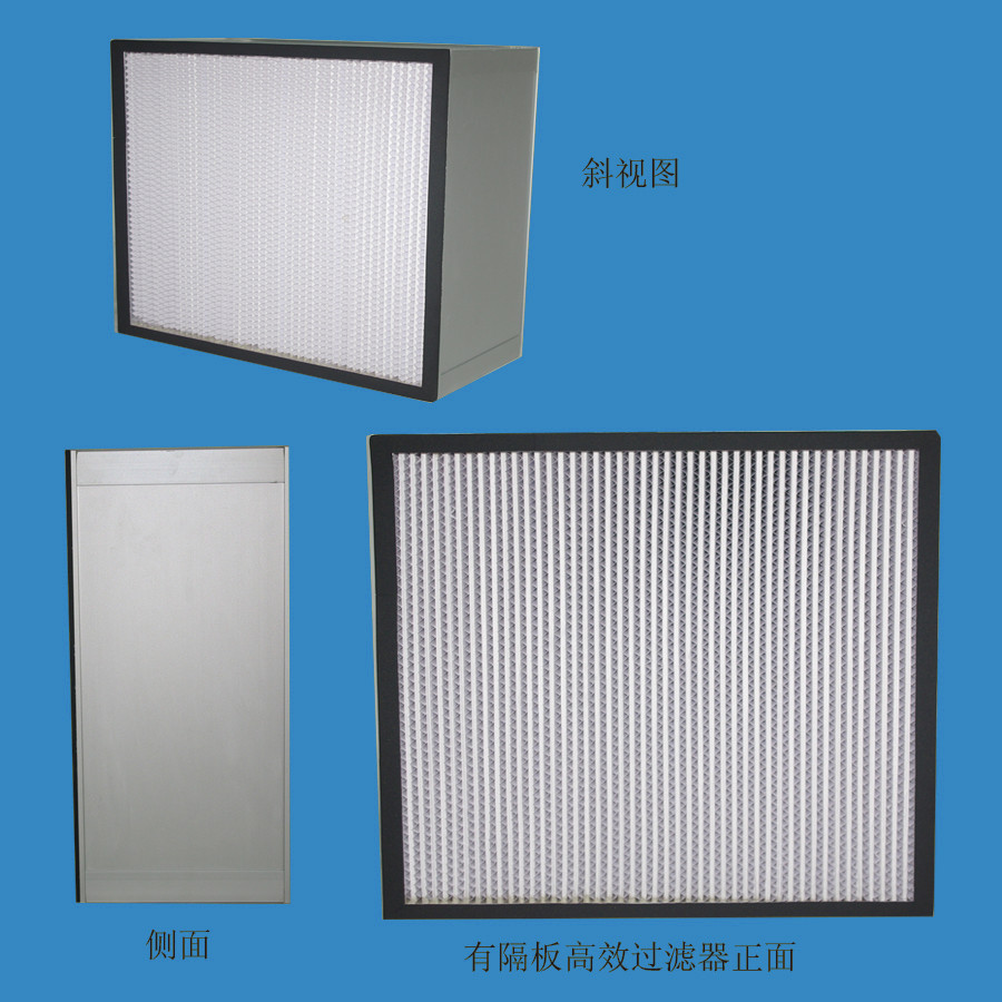 有隔板高效過濾器分為紙隔板高效過濾器、鋁箔隔板高效過濾器和耐高溫有隔板過濾器。參數(shù):