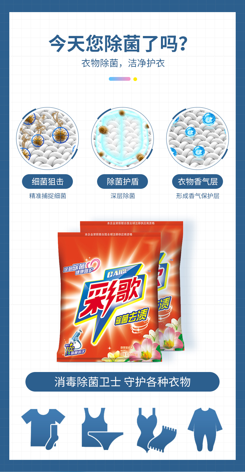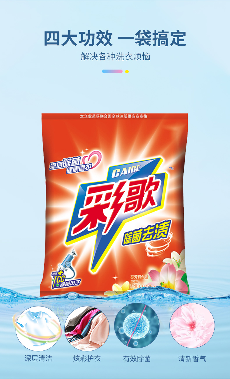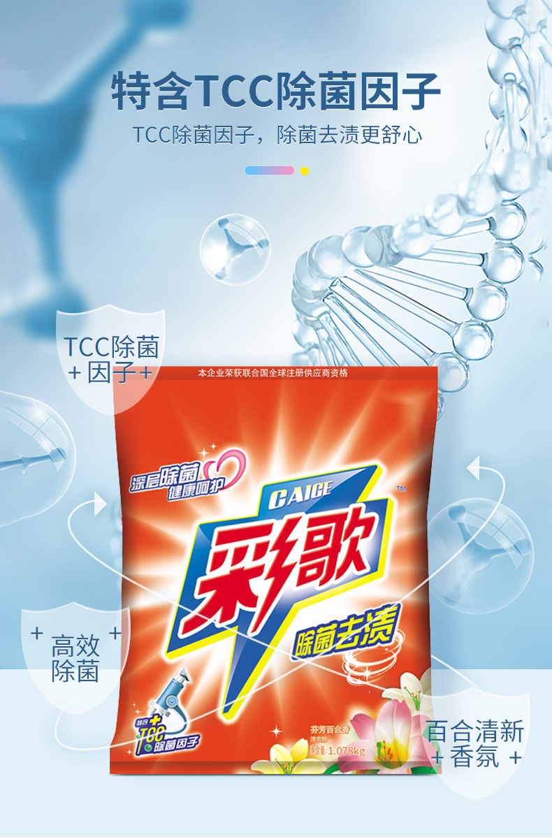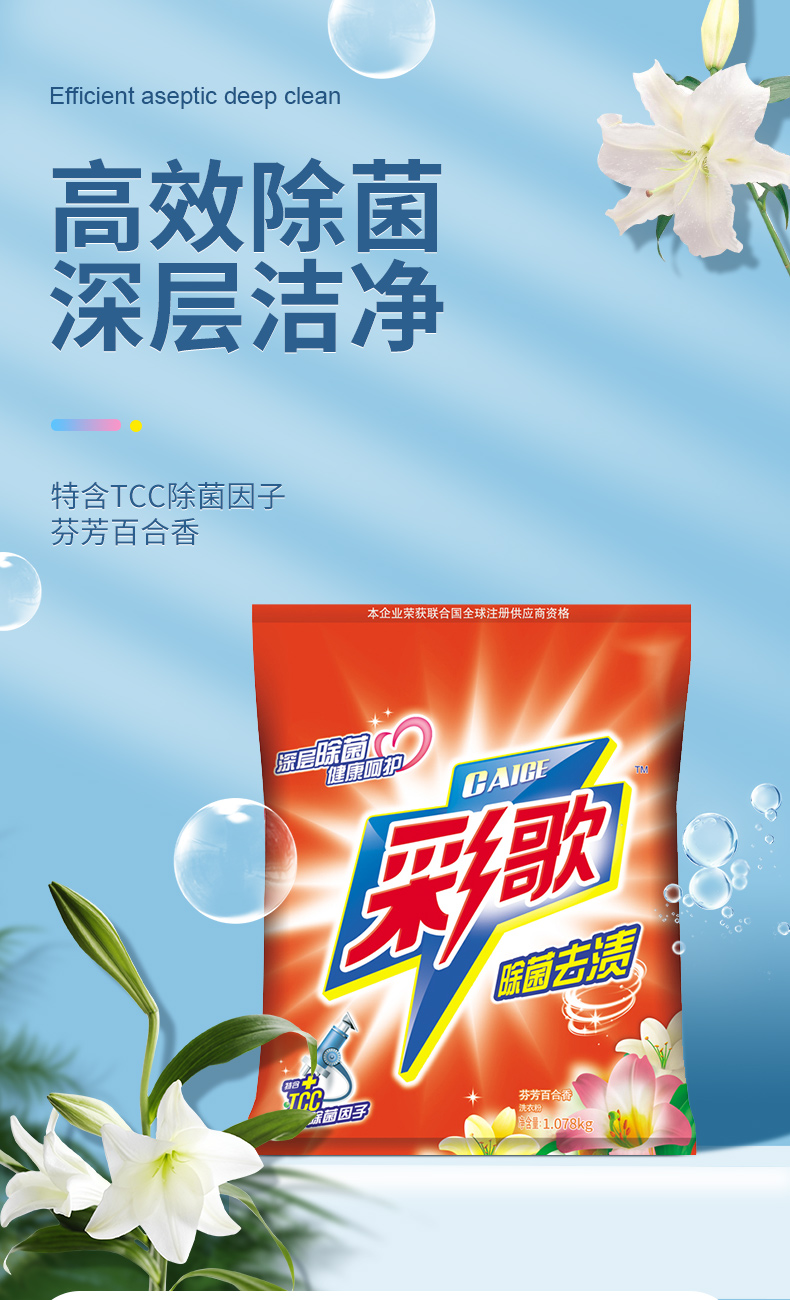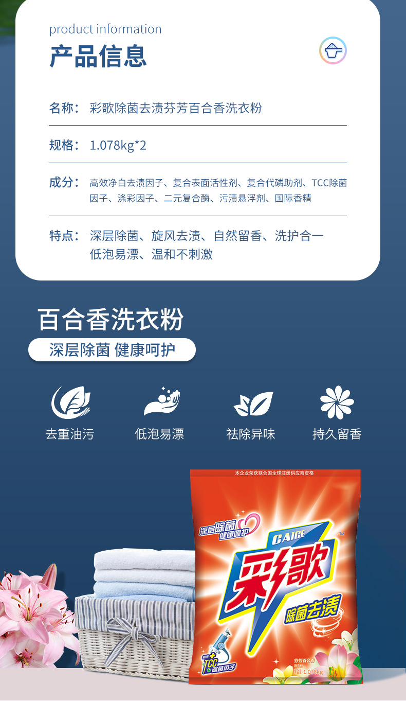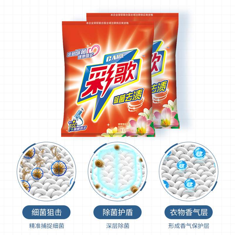 彩歌除菌去漬洗衣粉深層潔凈無磷百合香味持久留香1.078kg*2包