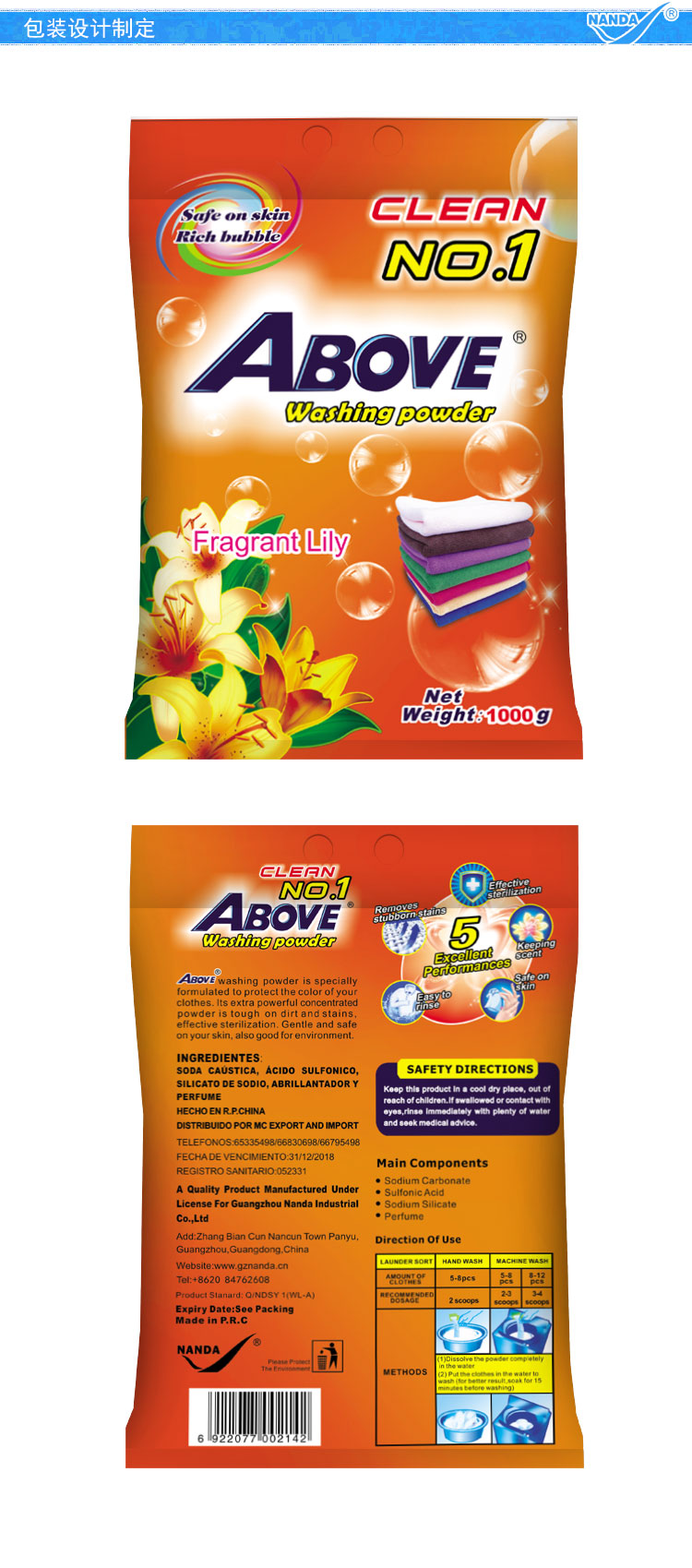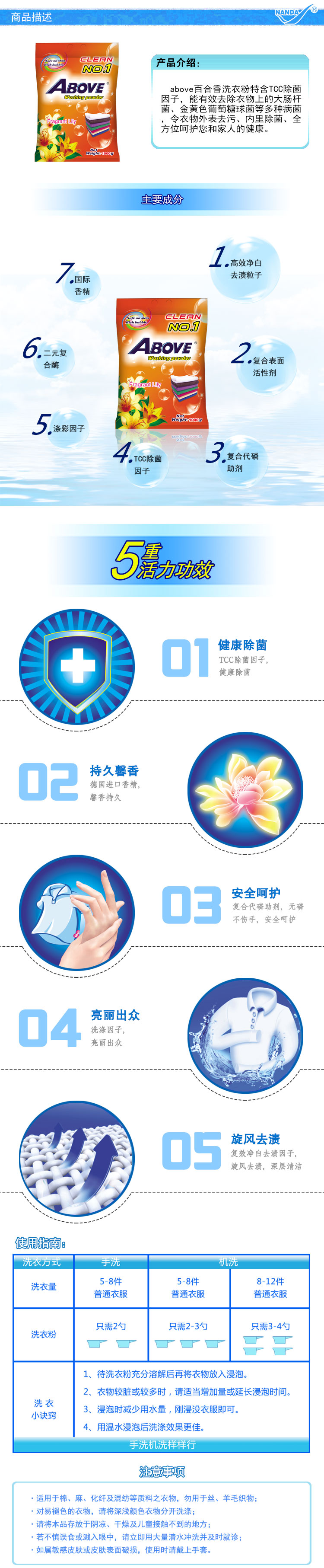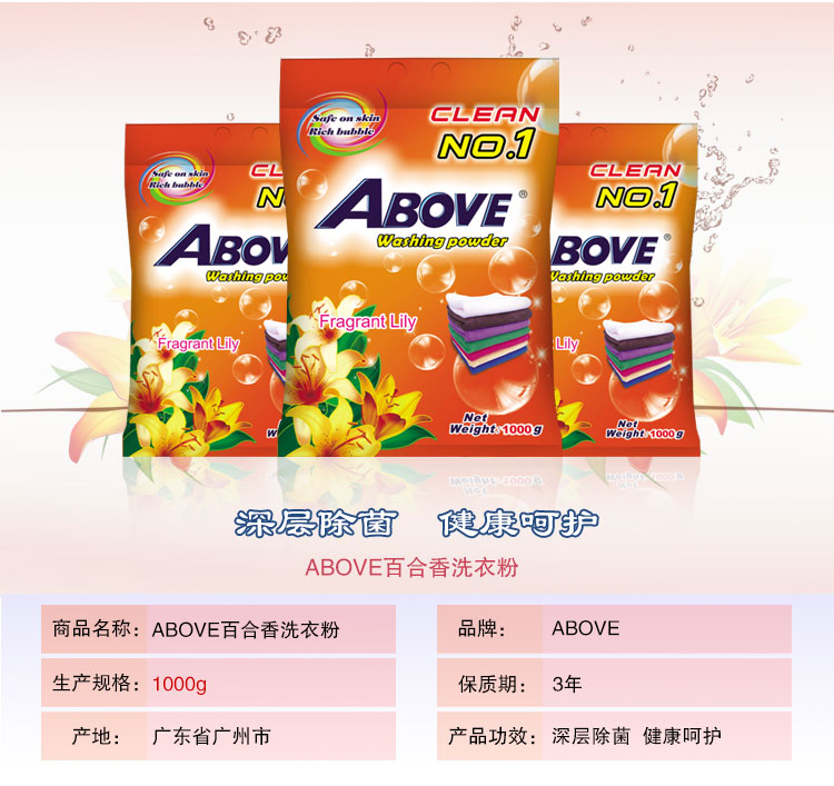 above百合香芳香無磷亮白高效潔凈含除菌因子深層除菌洗衣粉批發(fā)定制1000G