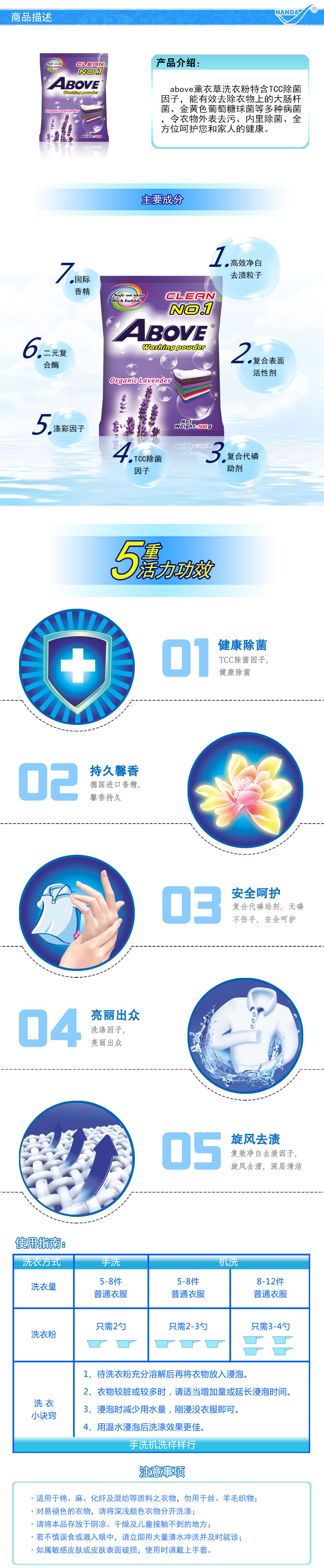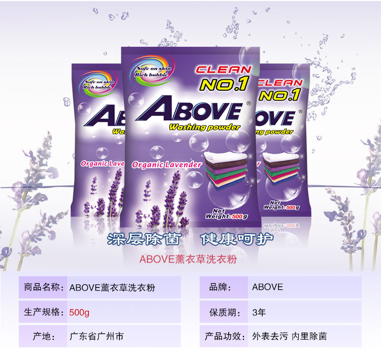above薰衣草芳香無(wú)磷亮白高效潔凈含除菌因子深層除菌洗衣粉批發(fā)定制500G